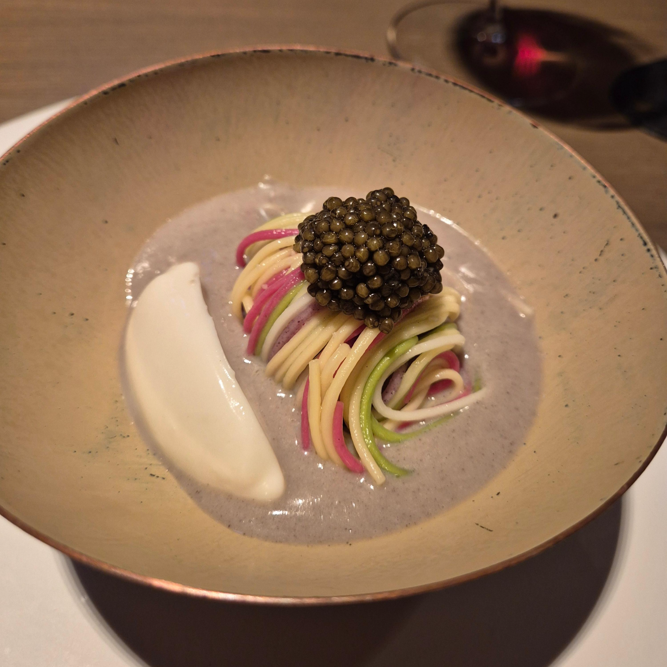 Korean rice noodle, soy, caviar